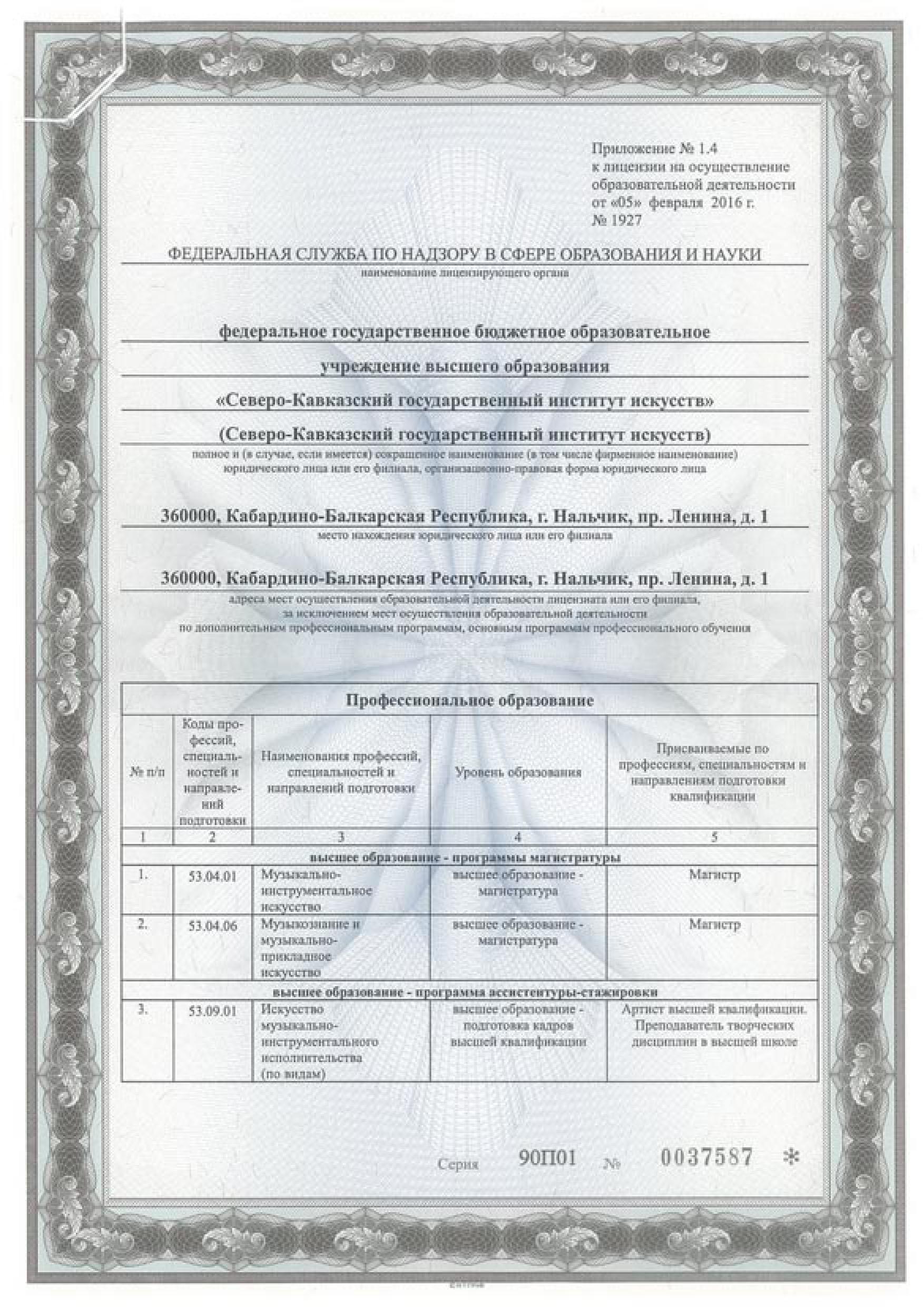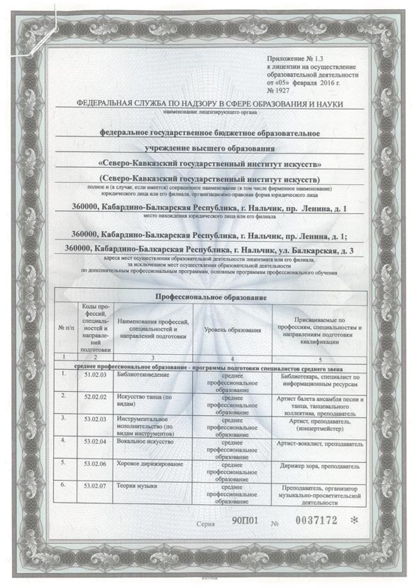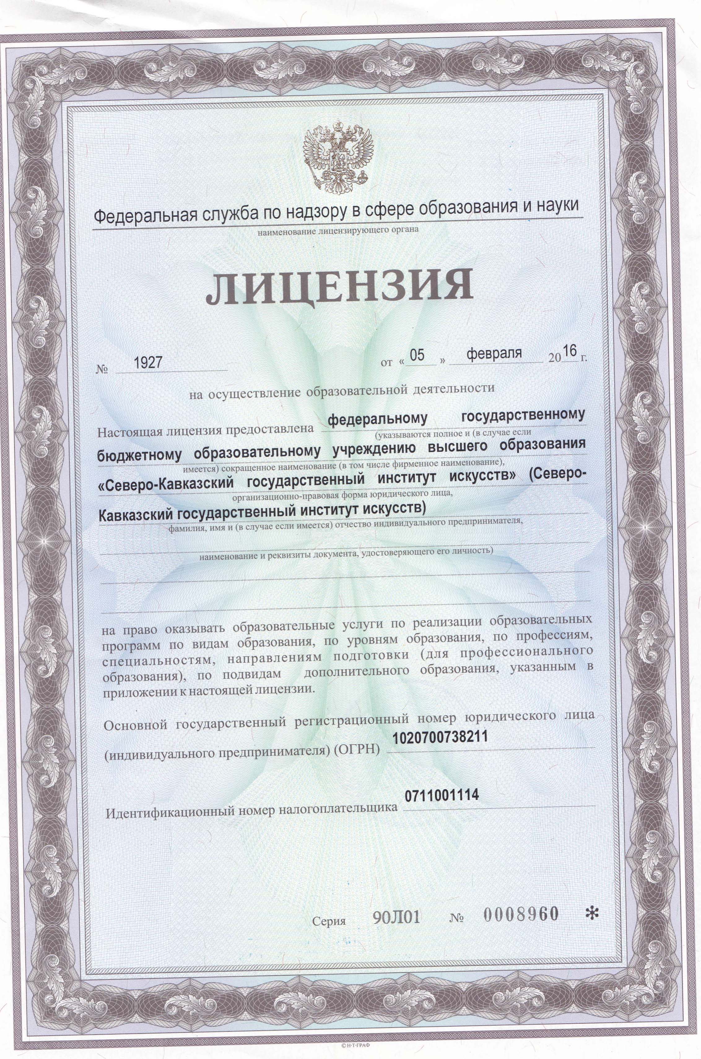 (Регистрационный № 1927 от 05 февраля 2016 года. Серия 90Л01 № 0008960)