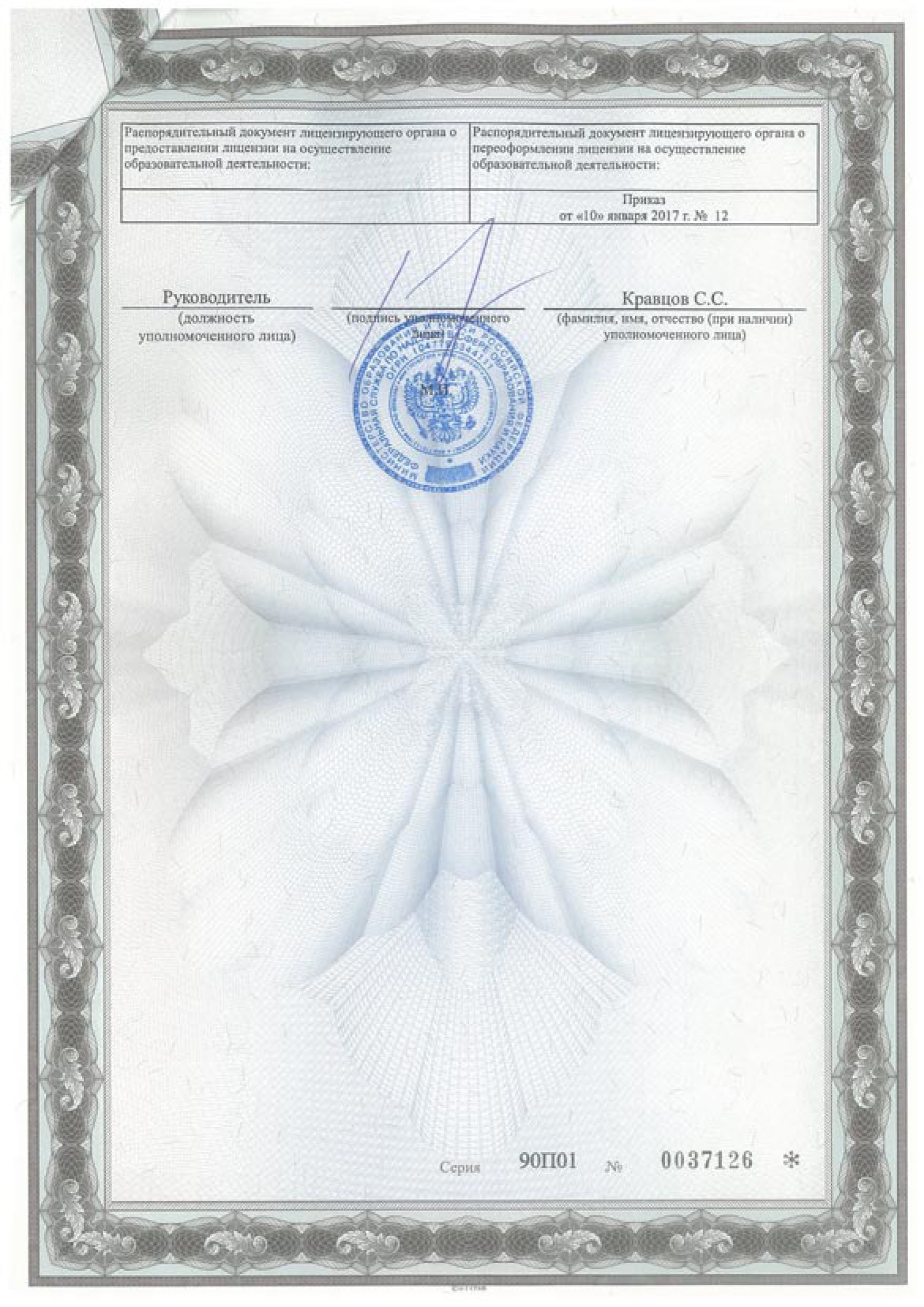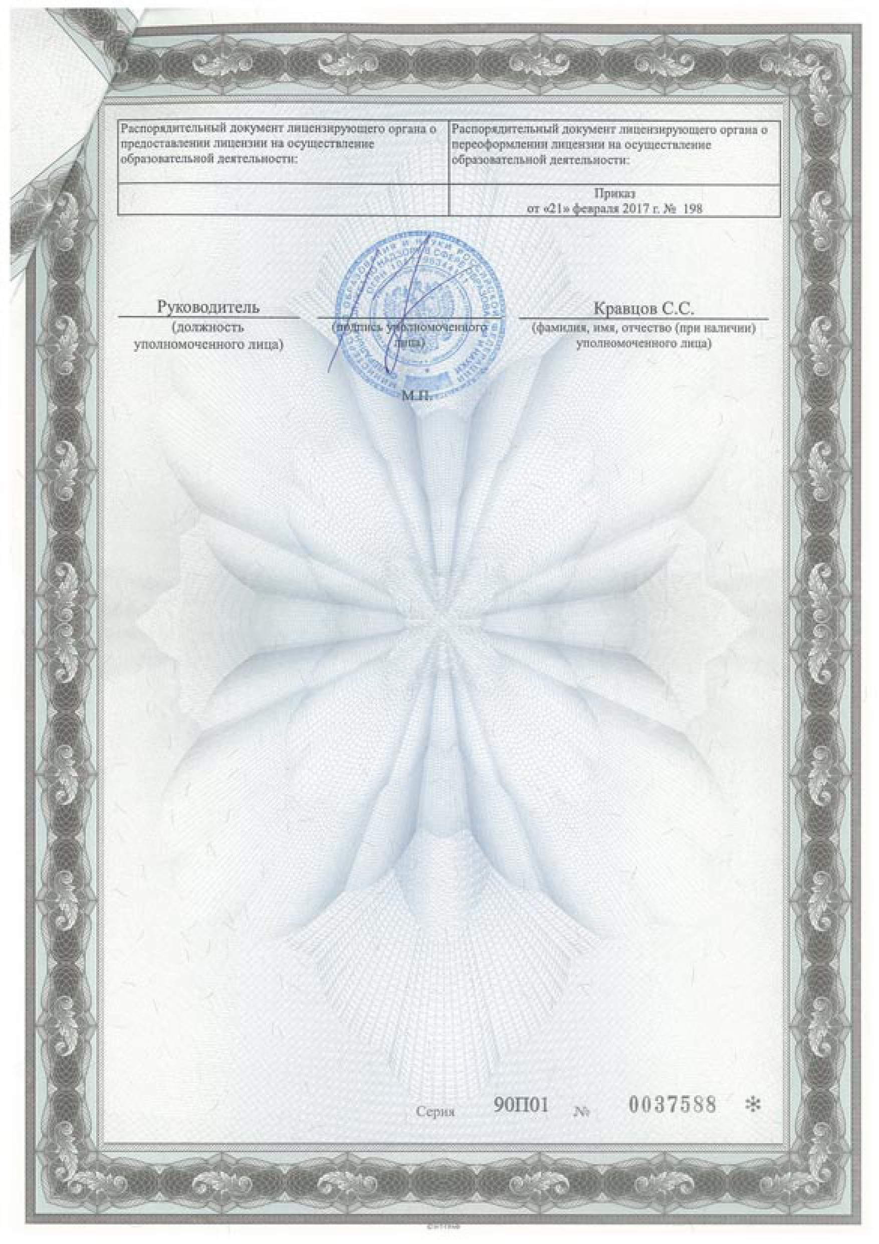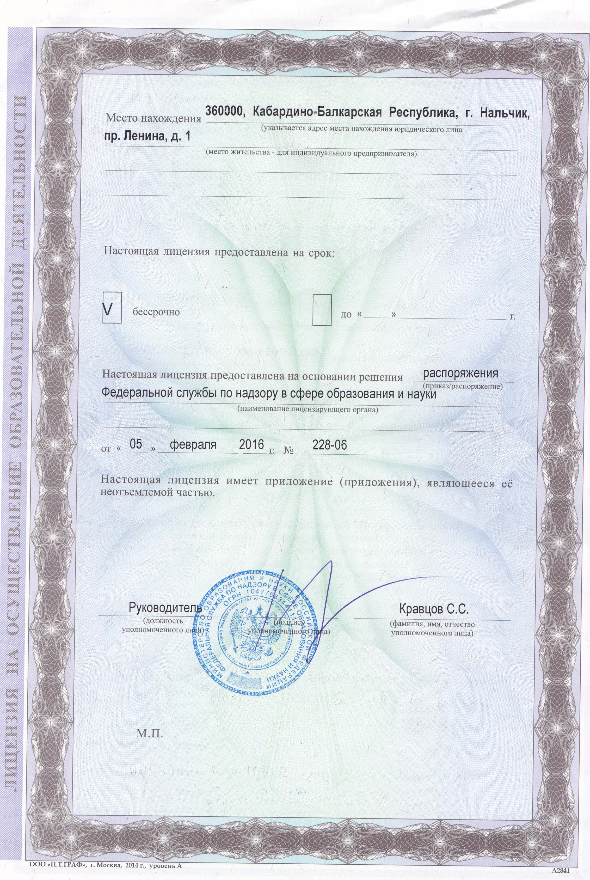 (Регистрационный № 1927 от 05 февраля 2016 года. Серия 90Л01 № 0008960)