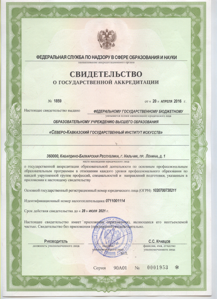 (Регистрационный № 1859 от 20 апреля 2016 года. Серия 90А01 № 0001953)